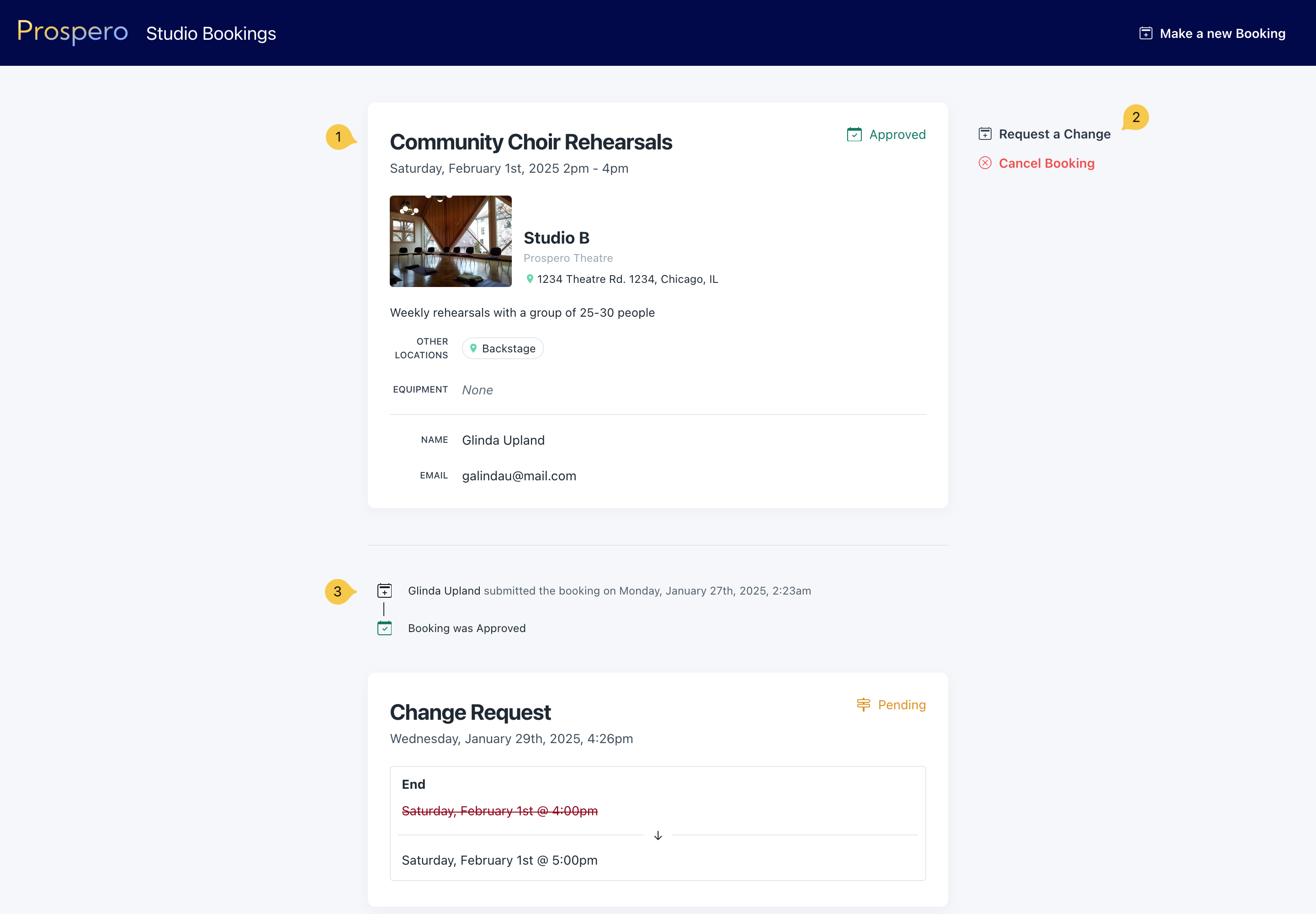 While you're approving bookings in Prospero, bookers can manage their booking via a unique link: