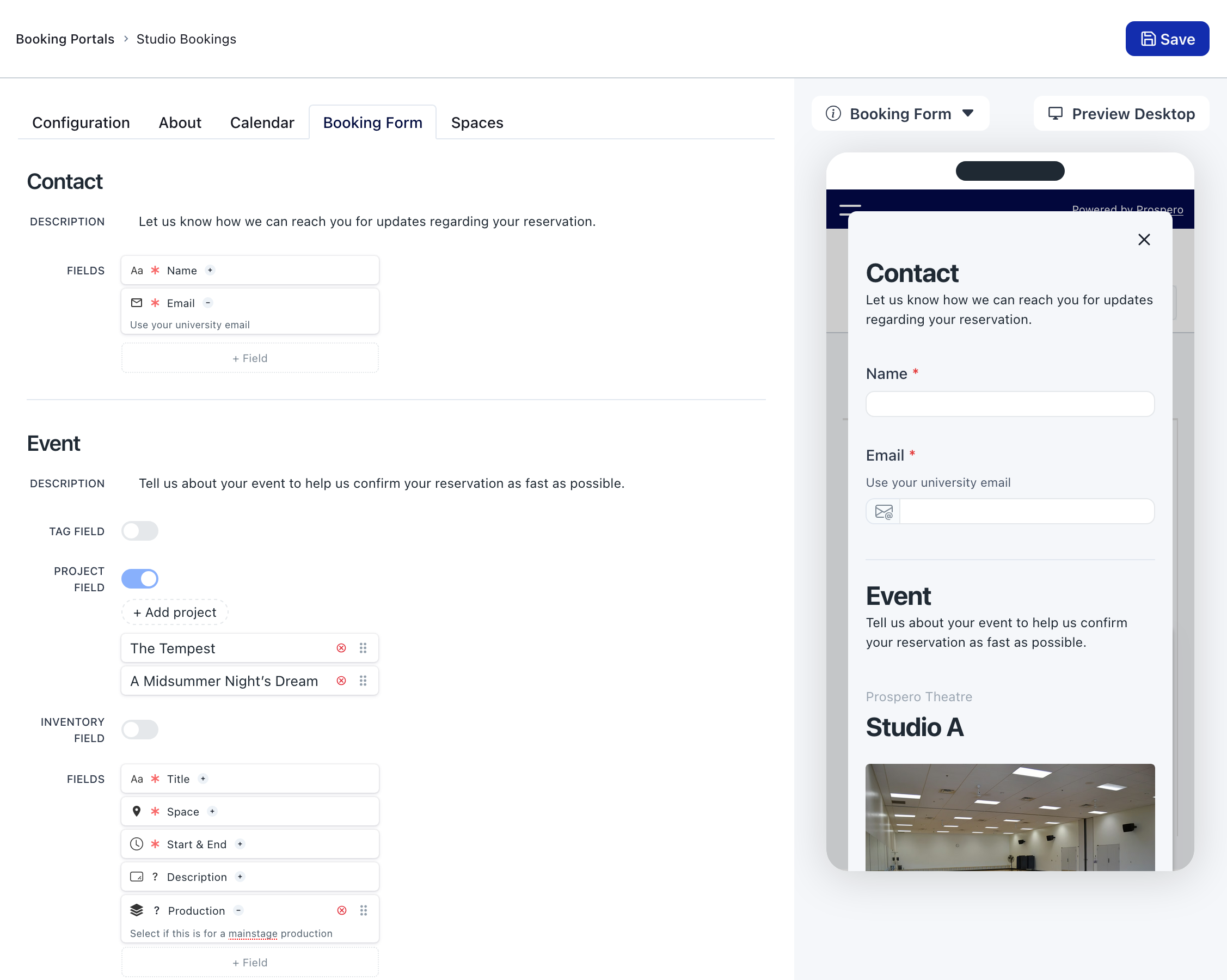 Bookers can now request multiple locations in a single booking, allowing for more flexibility when events span several rooms, studios, or venues. Whether a production uses one space for rehearsal and another for makeup and costumes, or a workshop runs simultaneously across breakout rooms, capture the full footprint of an event without having to create multiple requests.
